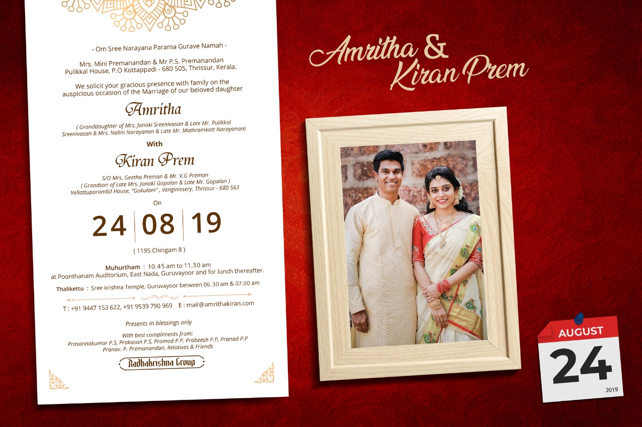 Two Families joined together on 26th May 2019 at Sivagiri Temple, Varkala. and there Mr. Kiran Prem & Ms. Amritha promised to be get married.